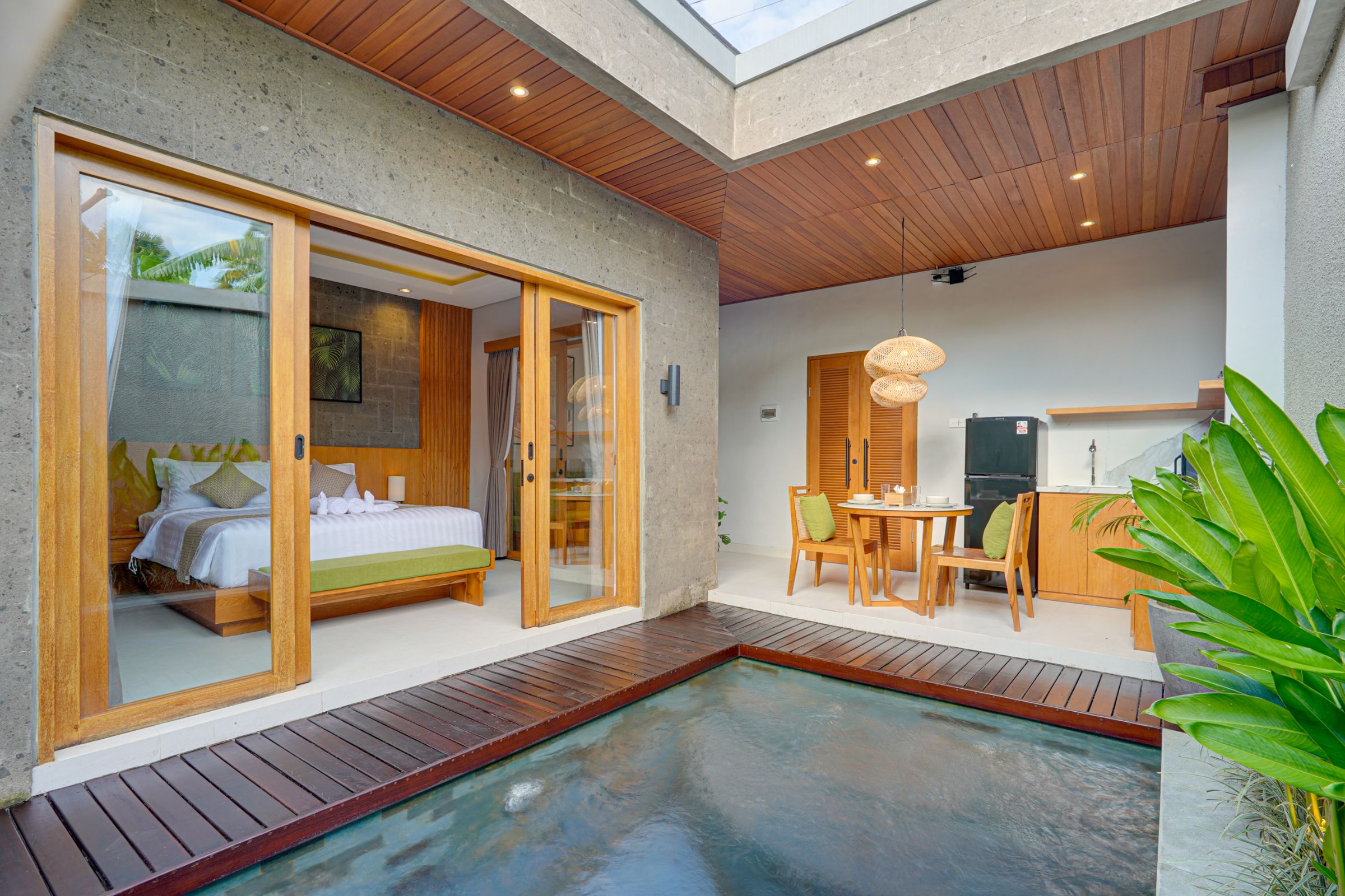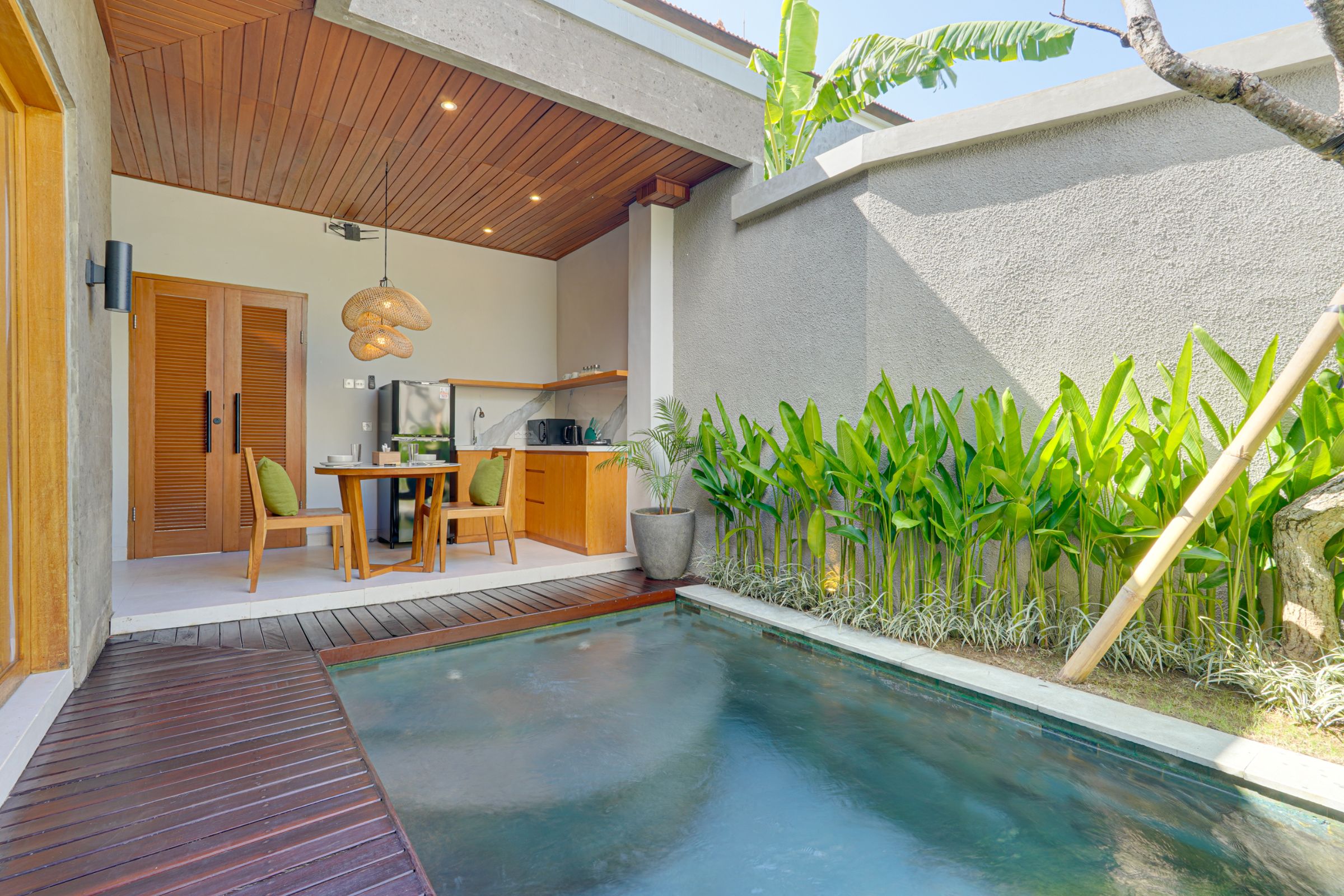 The villa's open-concept design seamlessly connects the fully equipped kitchen, dining area, and living room, where you can relax after a day of exploring. The air-conditioned bedroom with a smart TV is a haven of luxury, complete with an ensuite bathroom that boasts a standing shower, ensuring the ultimate in relaxation. A walk-in wardrobe offers ample space for all your belongings, making this villa feel like your home away from home. Whether you're seeking a peaceful retreat or a base for your Balinese adventures, Villa Umahera 3 provides the perfect setting for an unforgettable stay. Experience the perfect blend of convenience and indulgence, creating cherished memories in a haven crafted for discerning travelers seeking the very best.